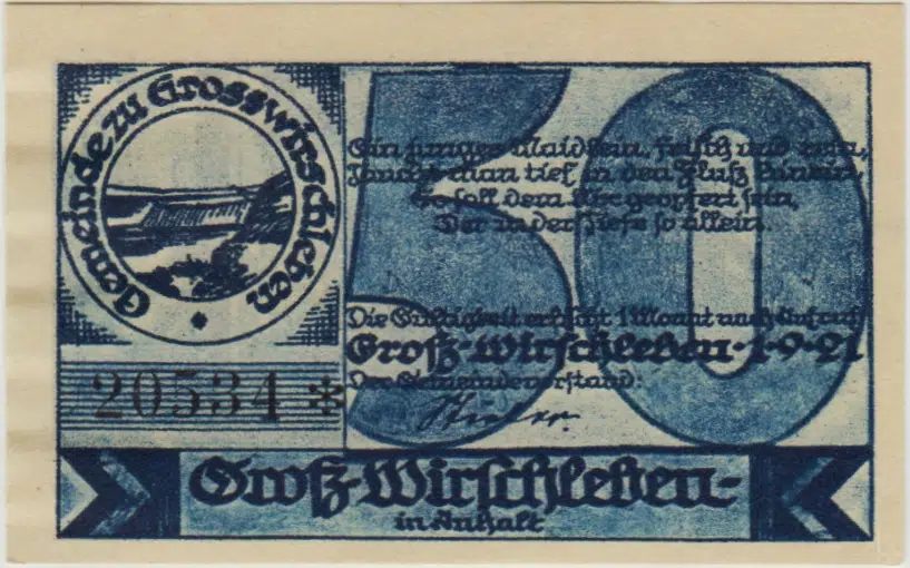 | Etiketler | ALMANYA 50 PFENNİG 1921 NOTGELD-GROSSWİRSCHLEBEN ŞEHRİ. ÇİL. |