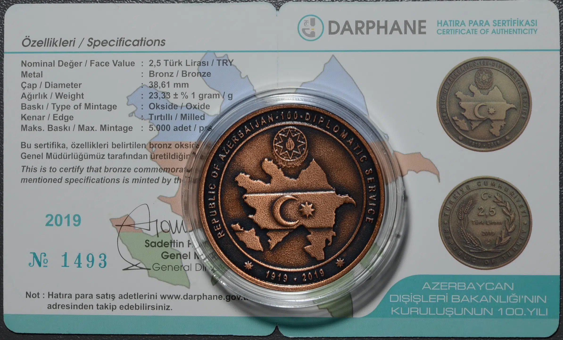 Etiketler | AZERBAYCAN DIŞİŞLERİ 100. YILI BRONZ HATIRA 2,5 LİRA. 1919-2019. SERTİFİKALI ÇİL. |