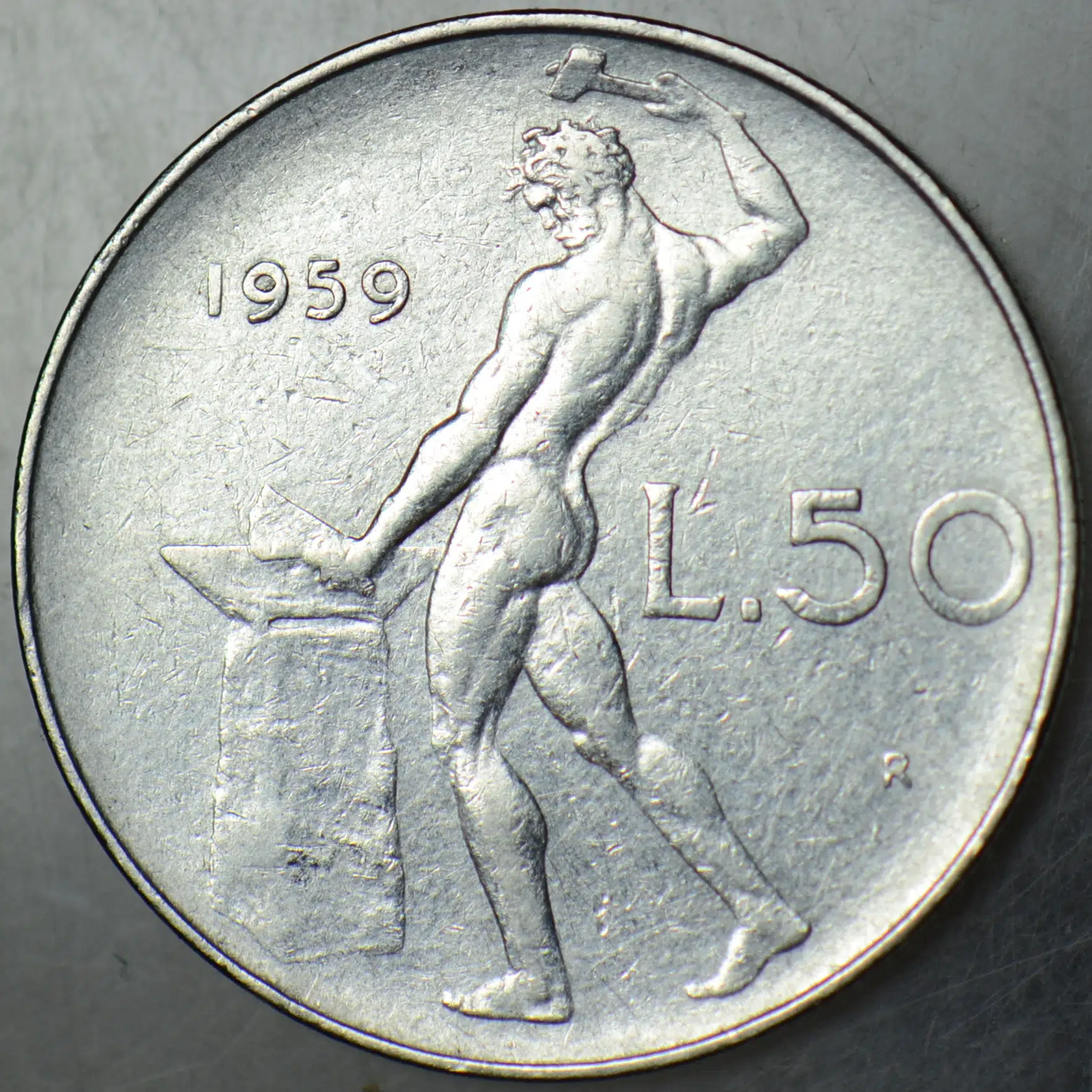 | Etiketler | İTALYA 50 LİRET 1959 ROMA TANRISI VULCANUS TEMALI. |