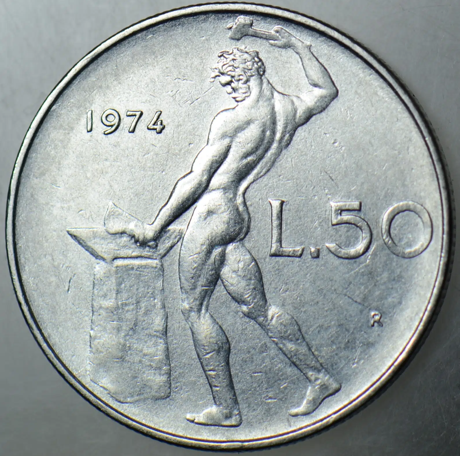 | Etiketler | İTALYA 50 LİRET 1974 ROMA TANRISI VULCANUS TEMALI. |