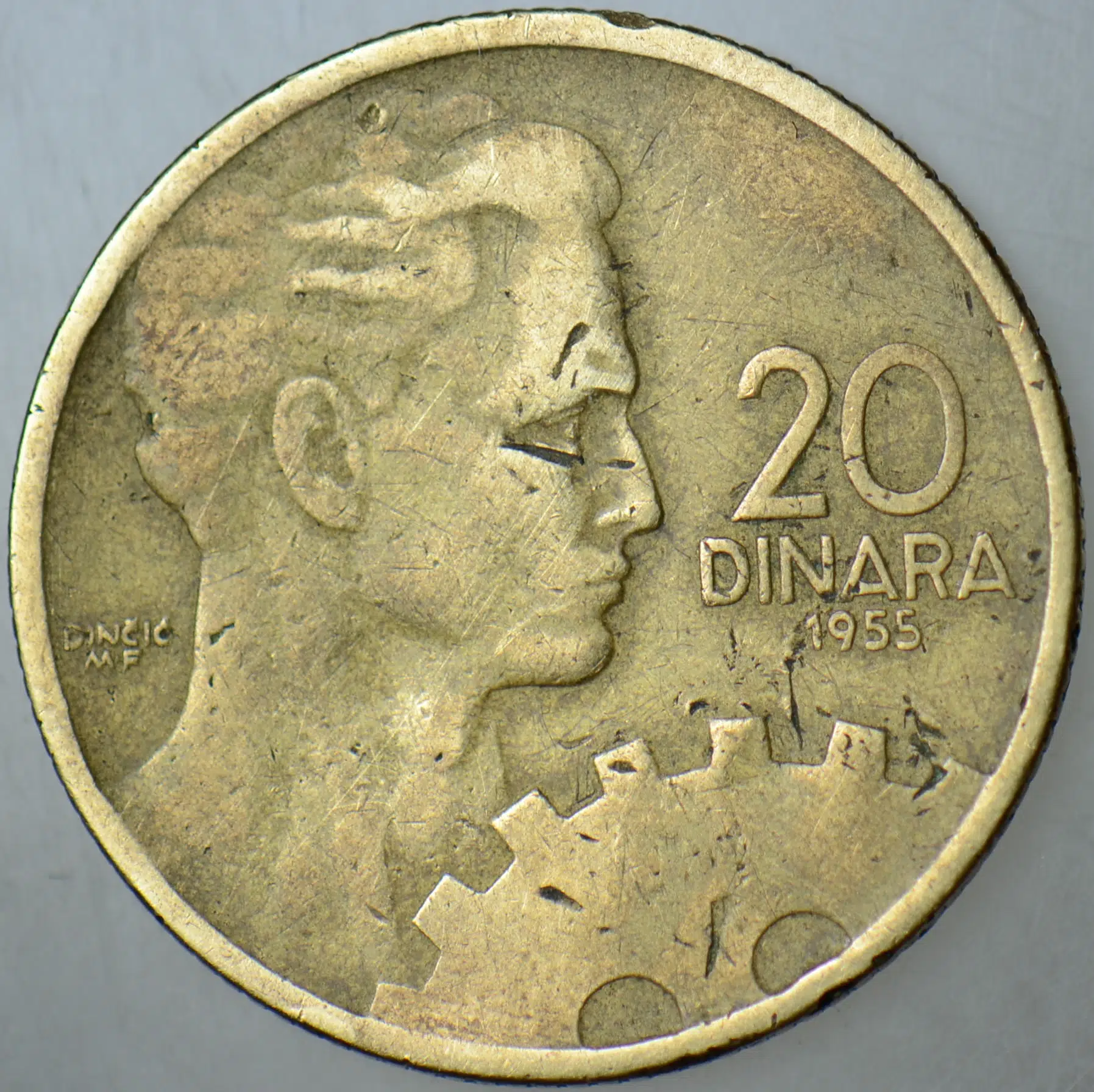 Etiketler | YUGOSLAVYA 20 DİNAR 1955 İŞÇİ VE ÇARK TEMALI. TİTO DÖNEMİ. |